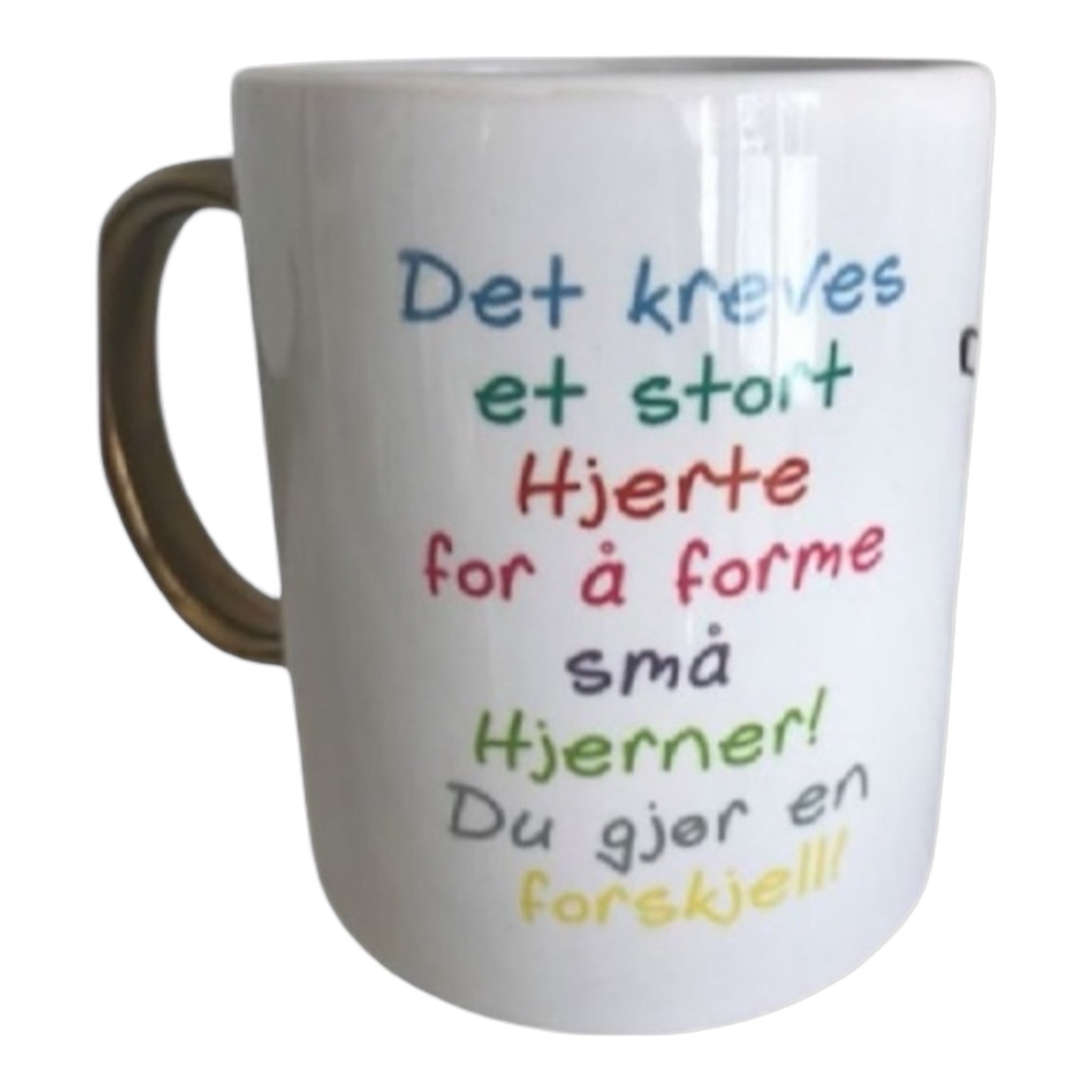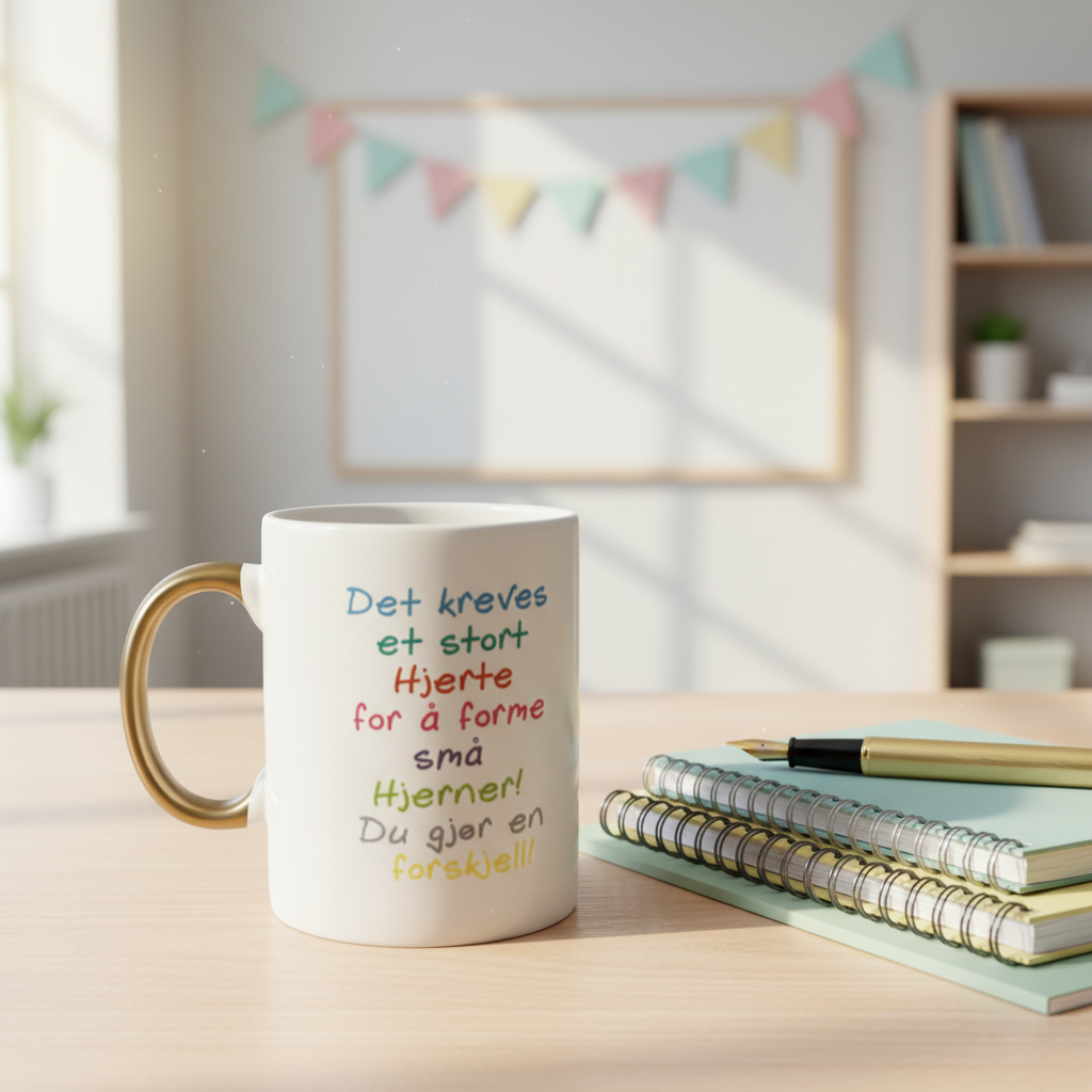 En kopp til alle de fantastiske menneskene som jobber i barnehage eller på skole Flotte gaver på jule og sommer avslutninger.Leveres slik som på bilde, men kan også settes på egen tilleggstekst eller navn