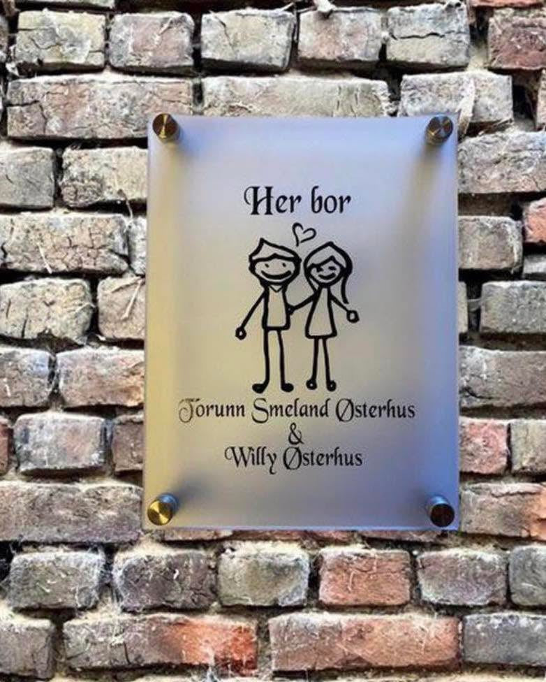 Dørskilt i akryl med avstandsfester, men ikke med skruer