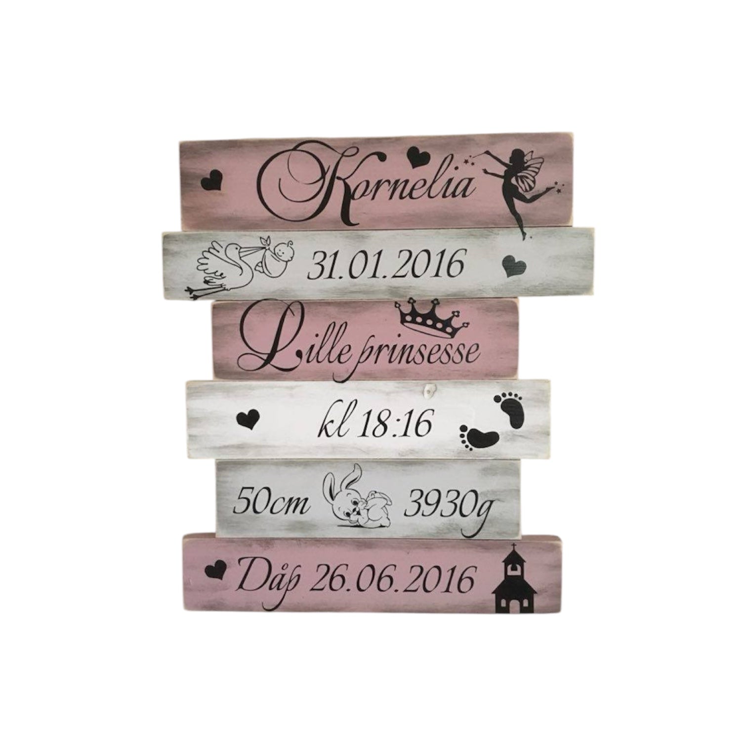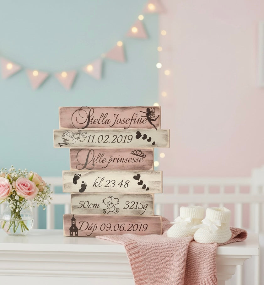 Flott skilt til fødsel, dåp, til barnerommet eller et flott blikkfang i stua
