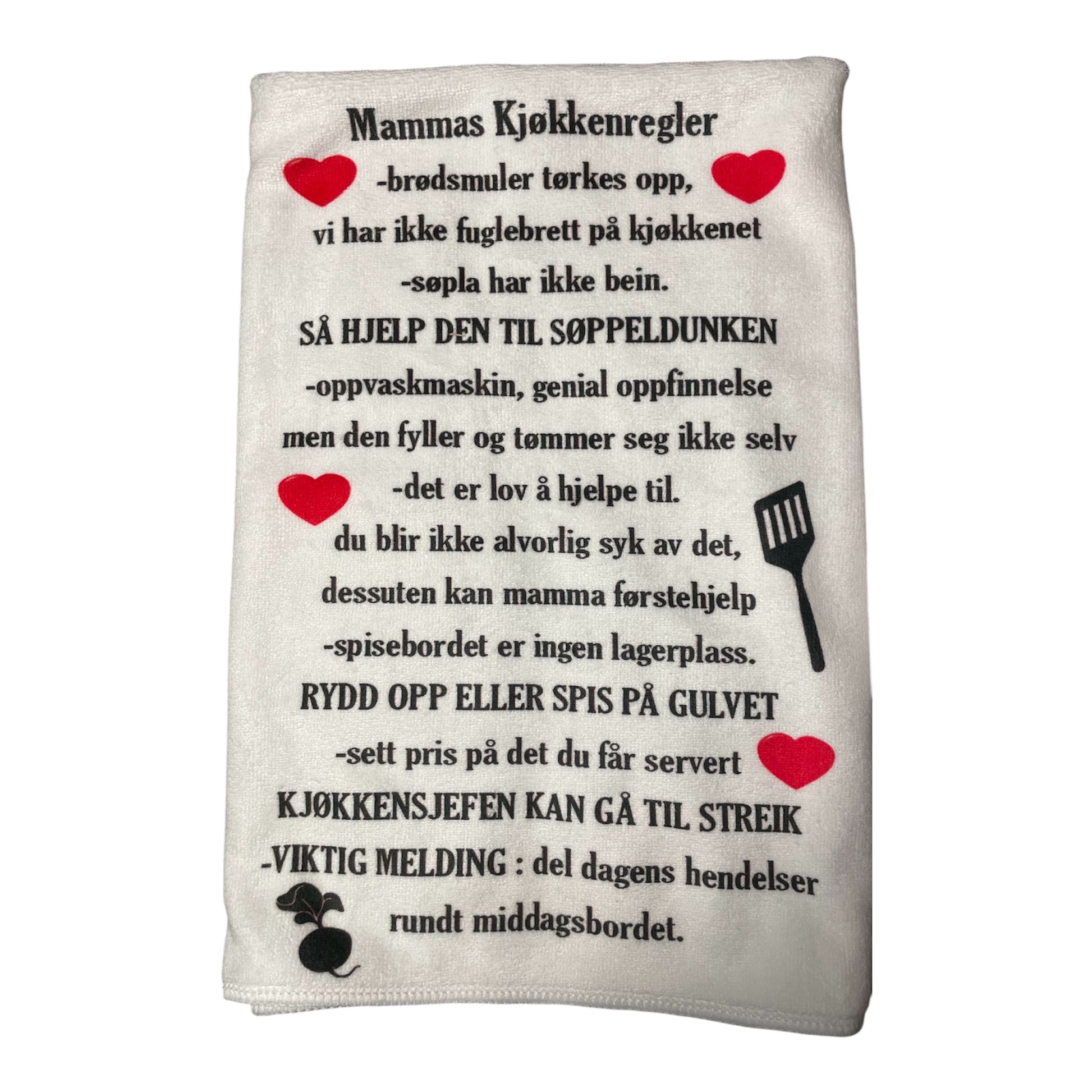 Kjøkkenhåndkle i mikrofiber, Myke og gode med morsom tekst