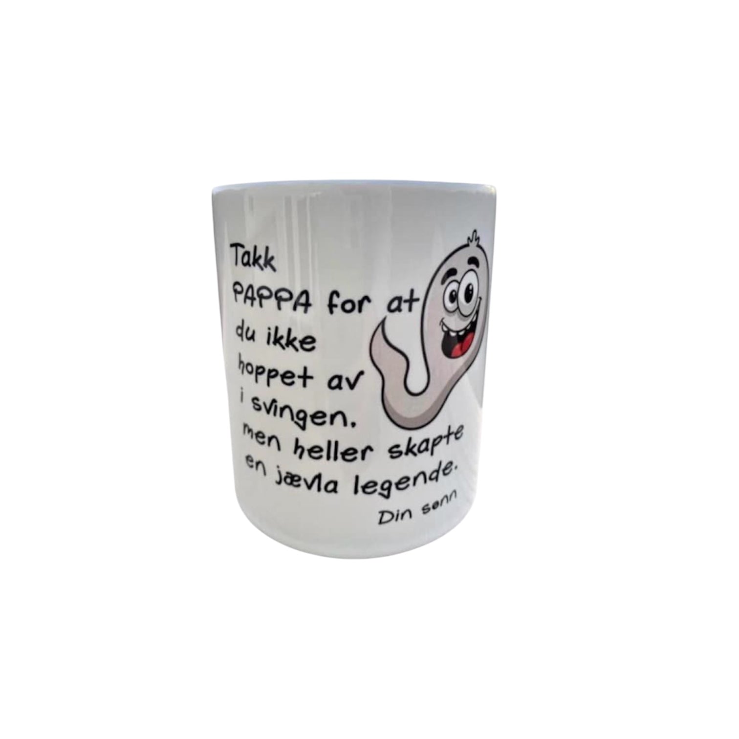 Koppene leveres med tekst og dekor som på bilde, men det kan også settes på tilleggstekst på koppen. Tilleggsteksten settes på på høyre side på koppen