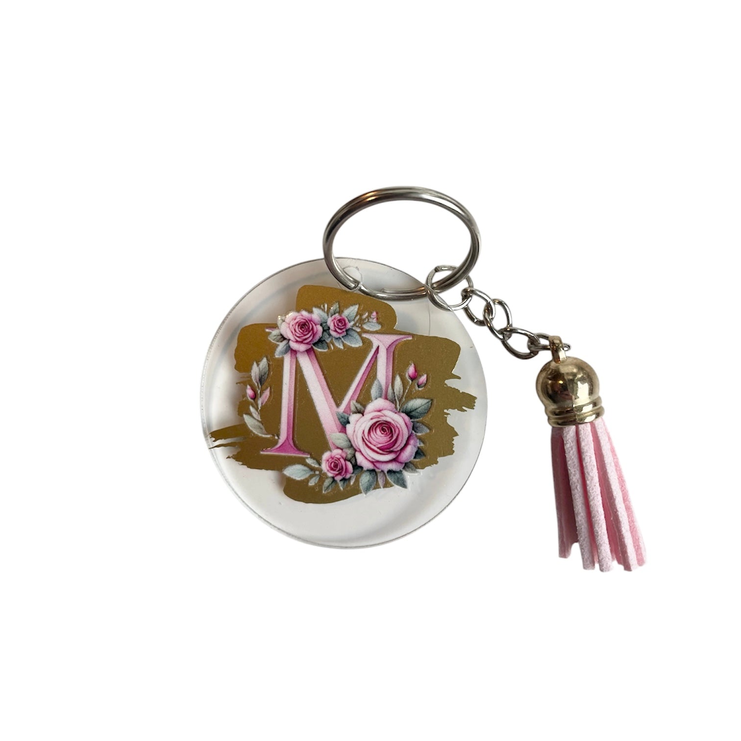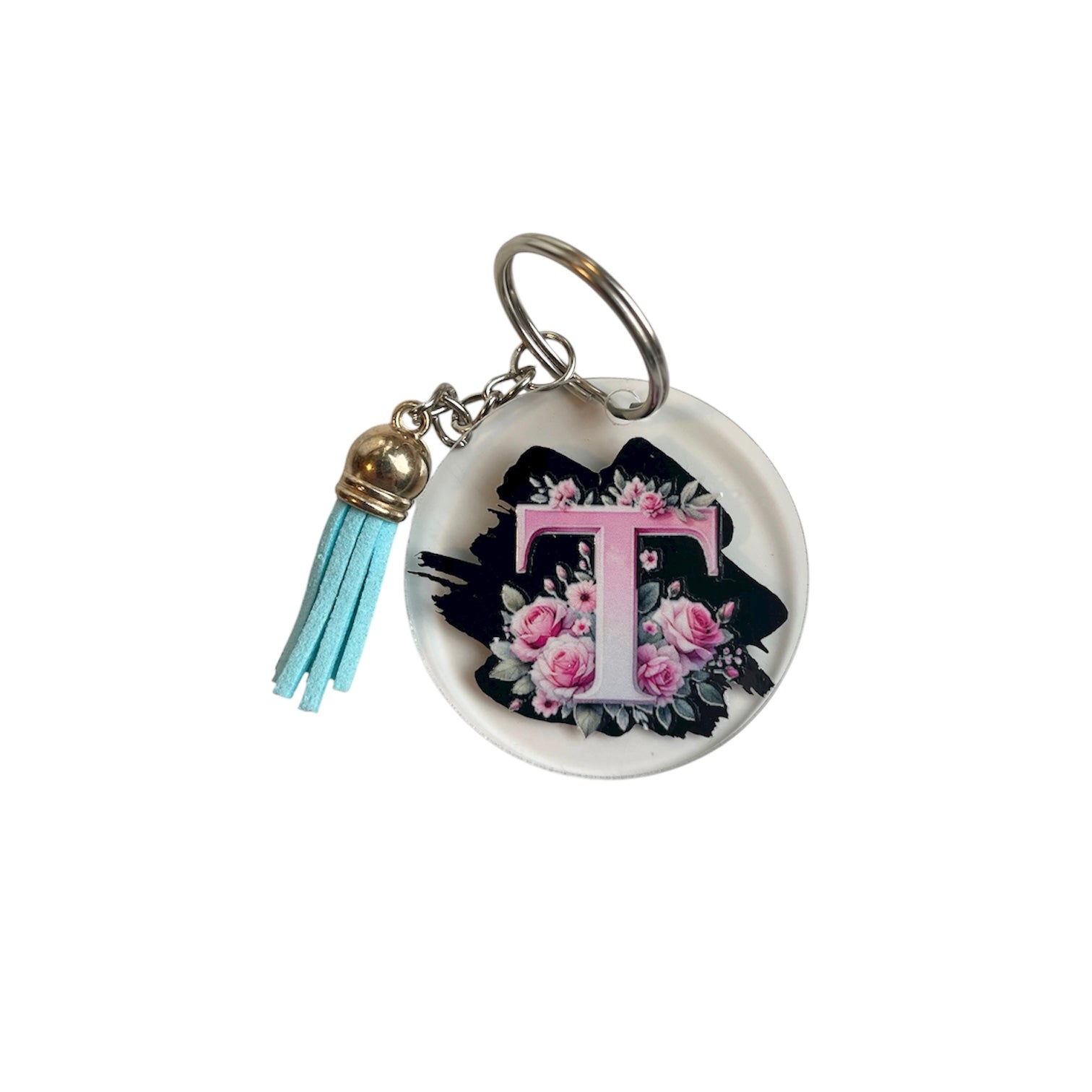 Nøkkelring i akryl med initialer. Leveres i 3 varianter