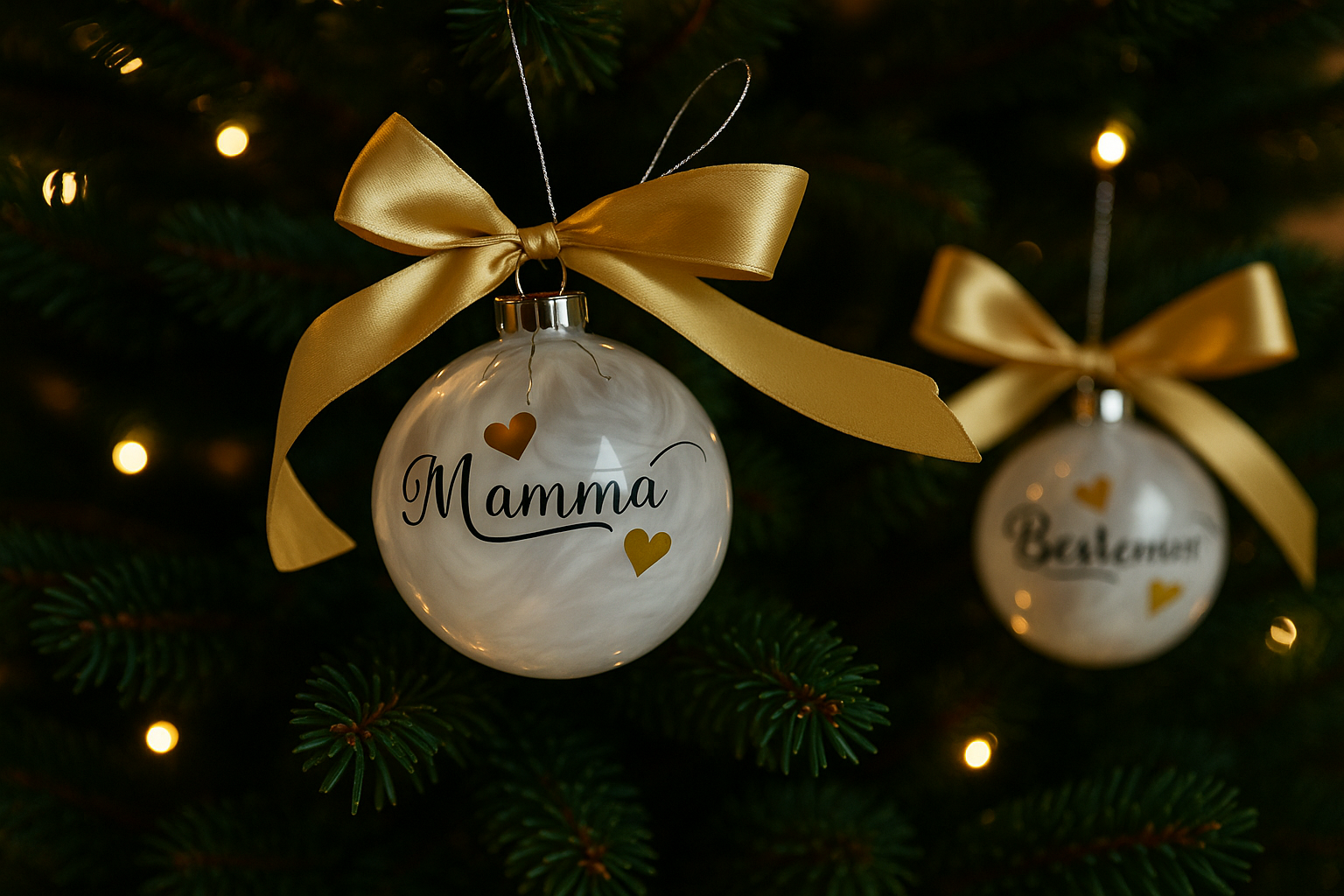 Gi bort en gave som varmer. Julekule med personlig tekst. Maks 6 ord